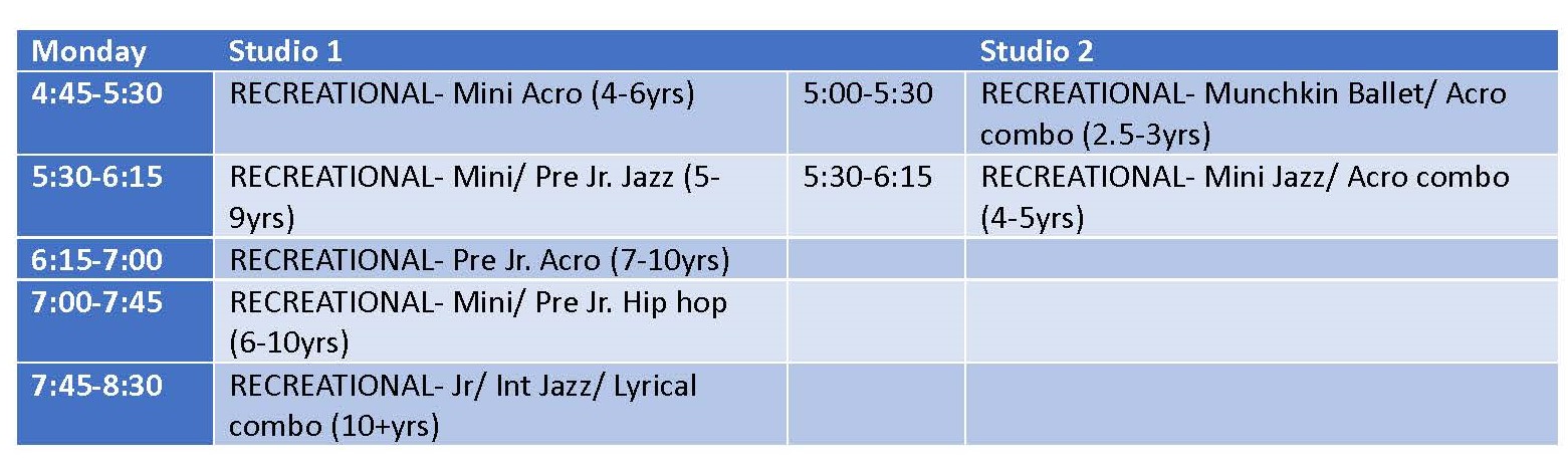 (Classes run September till Mid May)